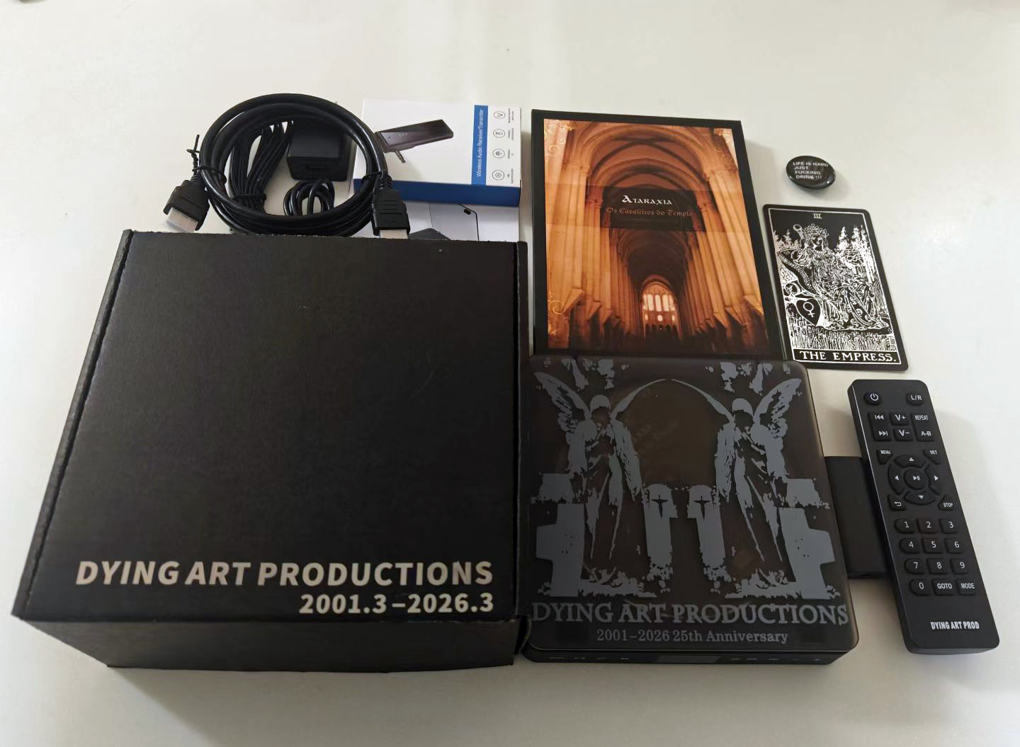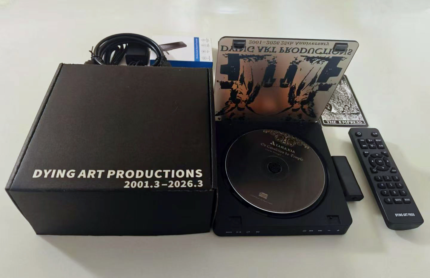最后的纪念DYING ART PROD 运营25周年(同时也是结束营业)纪念款定制碟机套装,第一批二十五台已售罄。第二批二十五台已售罄,第三批(CD+DVD小改款)五十台已售罄,第四批(CD+DVD小改款)二十五台正在众筹预售中,2026年5月1日截止,5月底前发货。